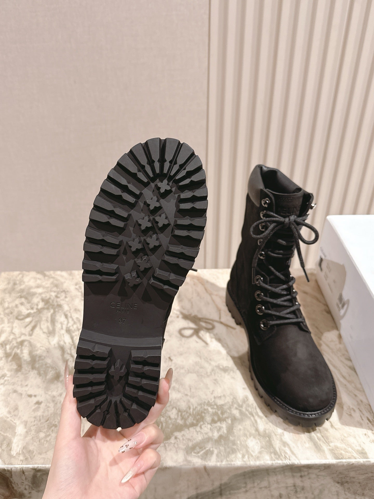 CELINE 25S SHORT MARTIN BOOTS IN BLACK CALFSKIN