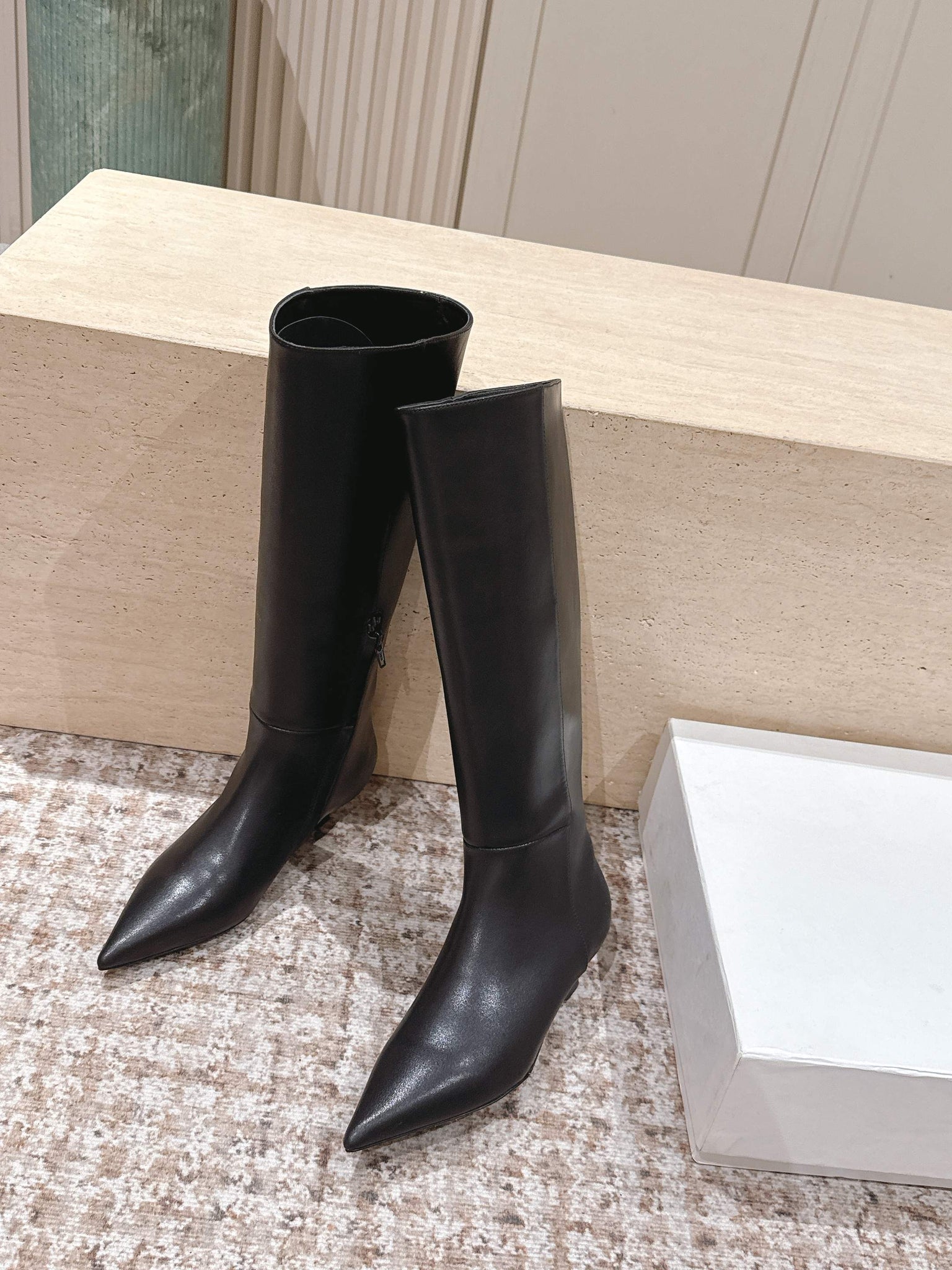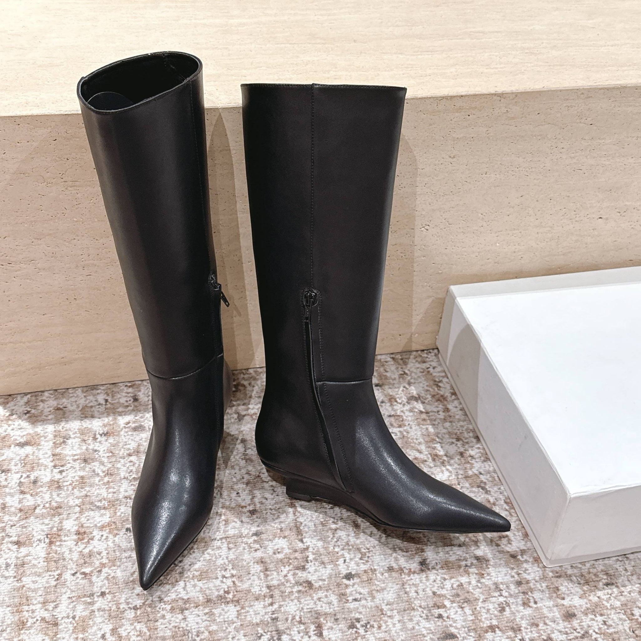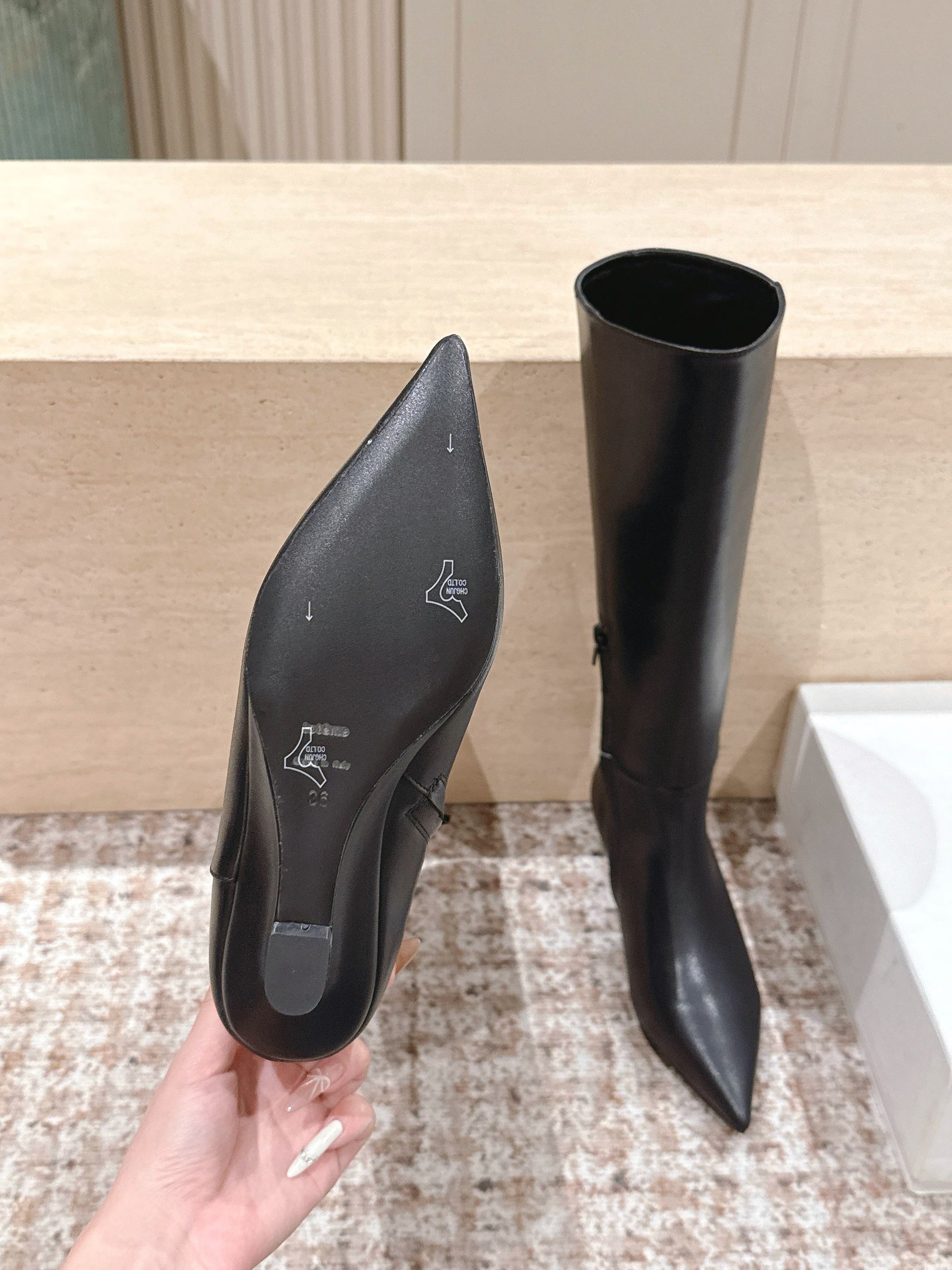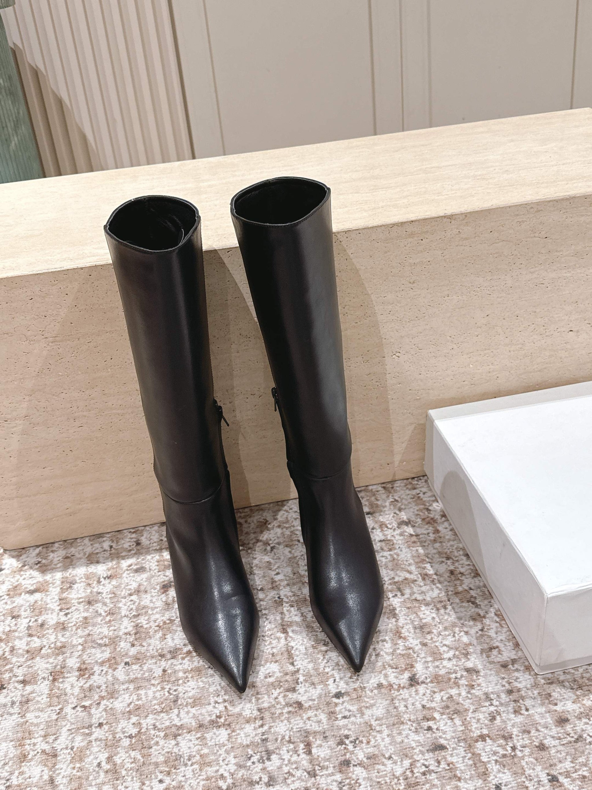 CELINE 26S HIGH-TOP BOOTS 55 MM IN BLACK CALFSKIN