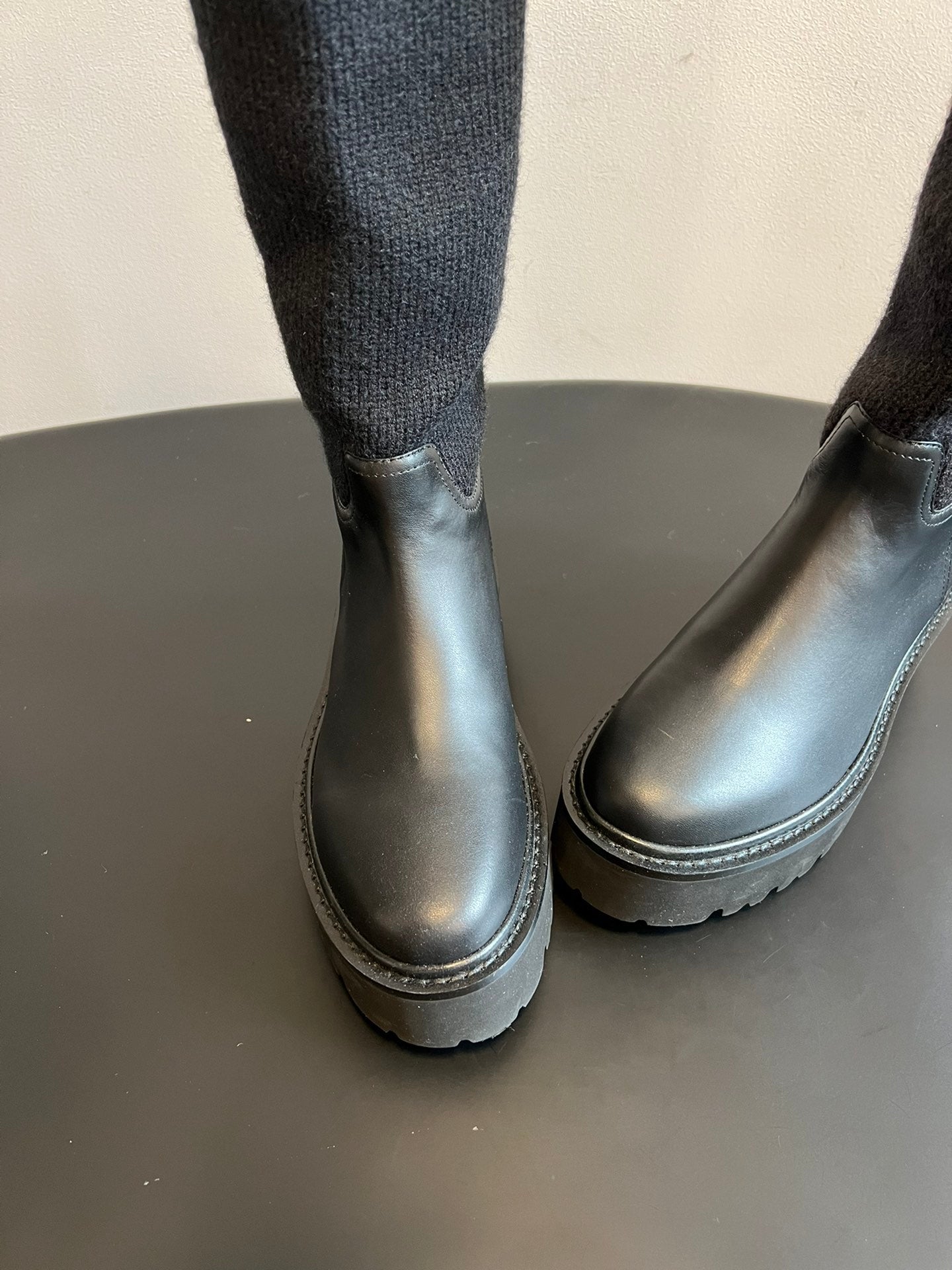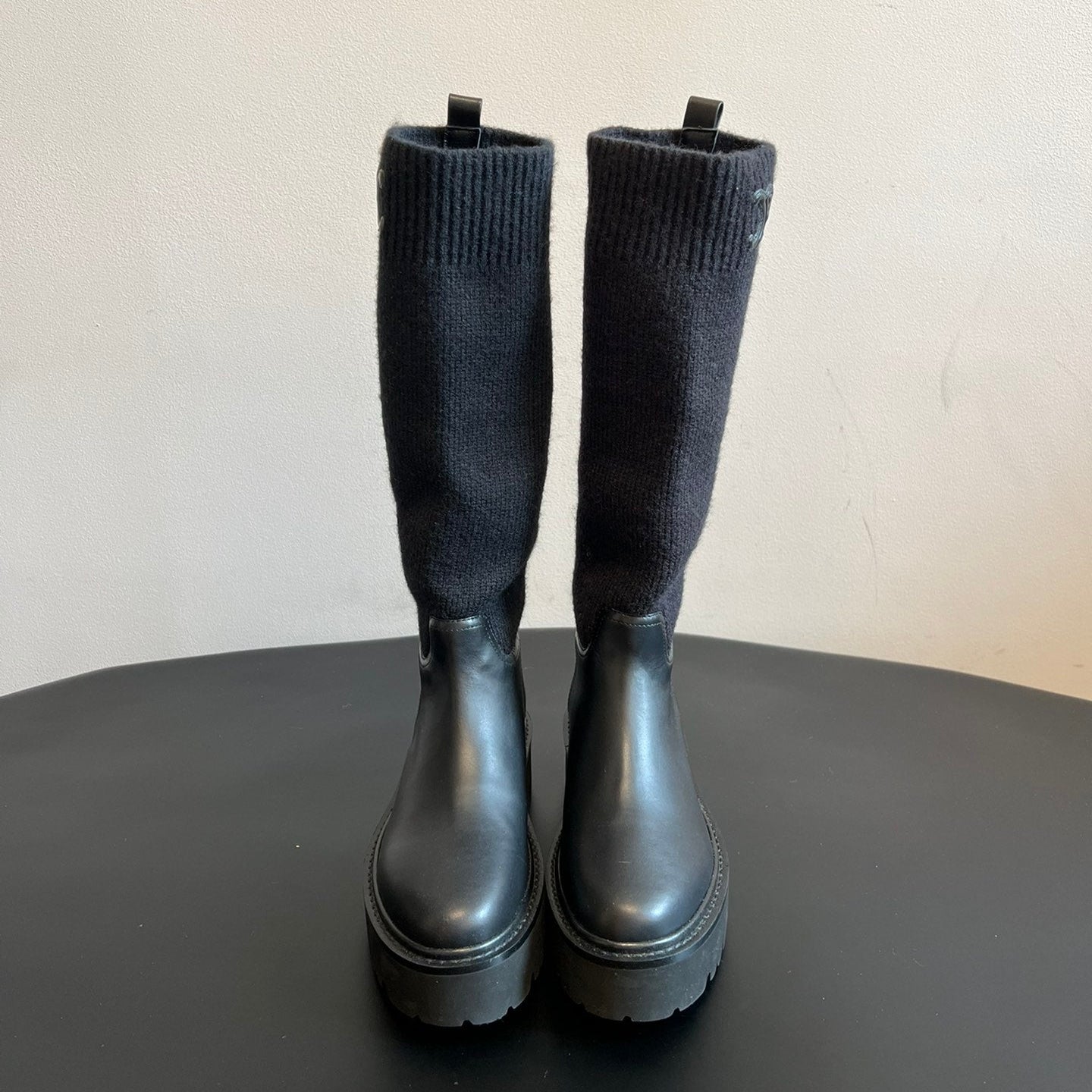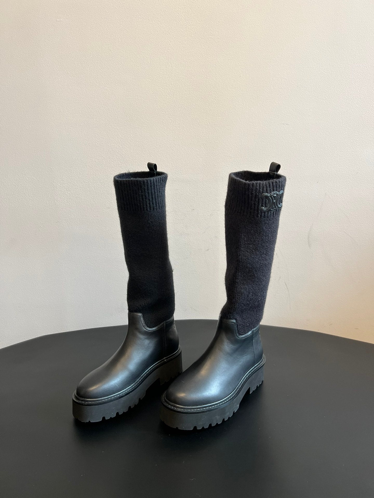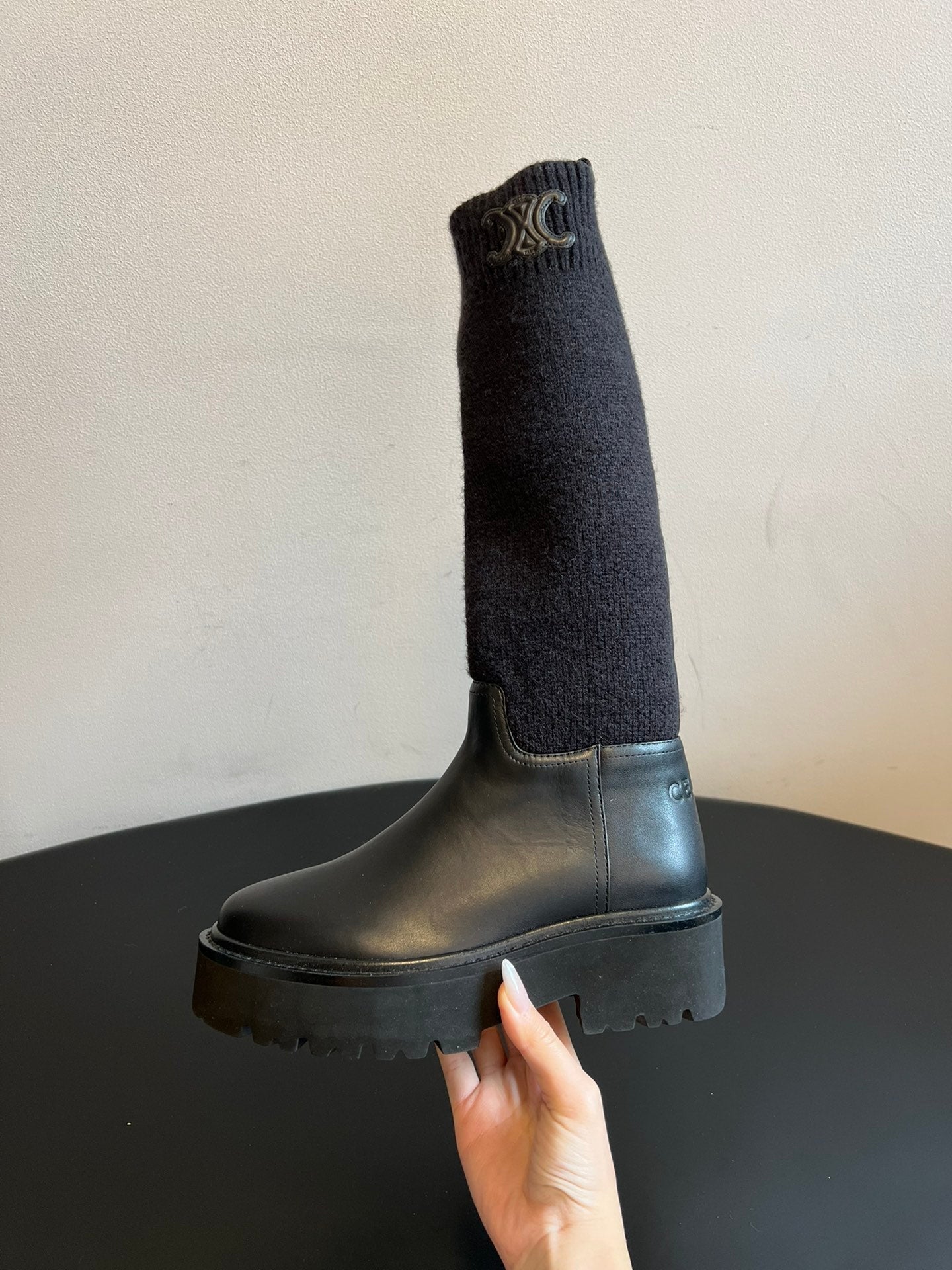 CELINE 26S HIGH-TOP BOOTS 60 MM IN BLACK CALFSKIN AND WOOL
