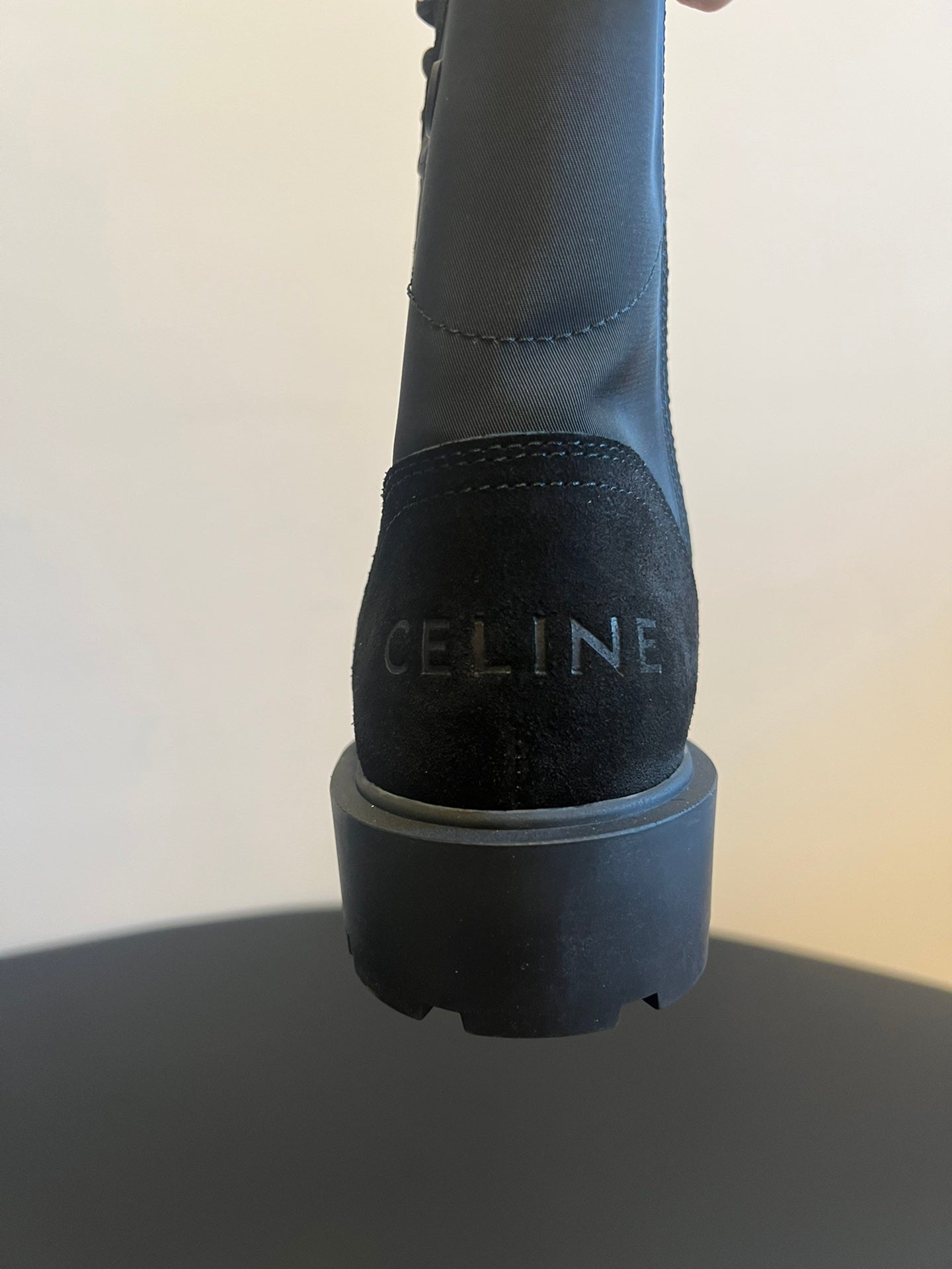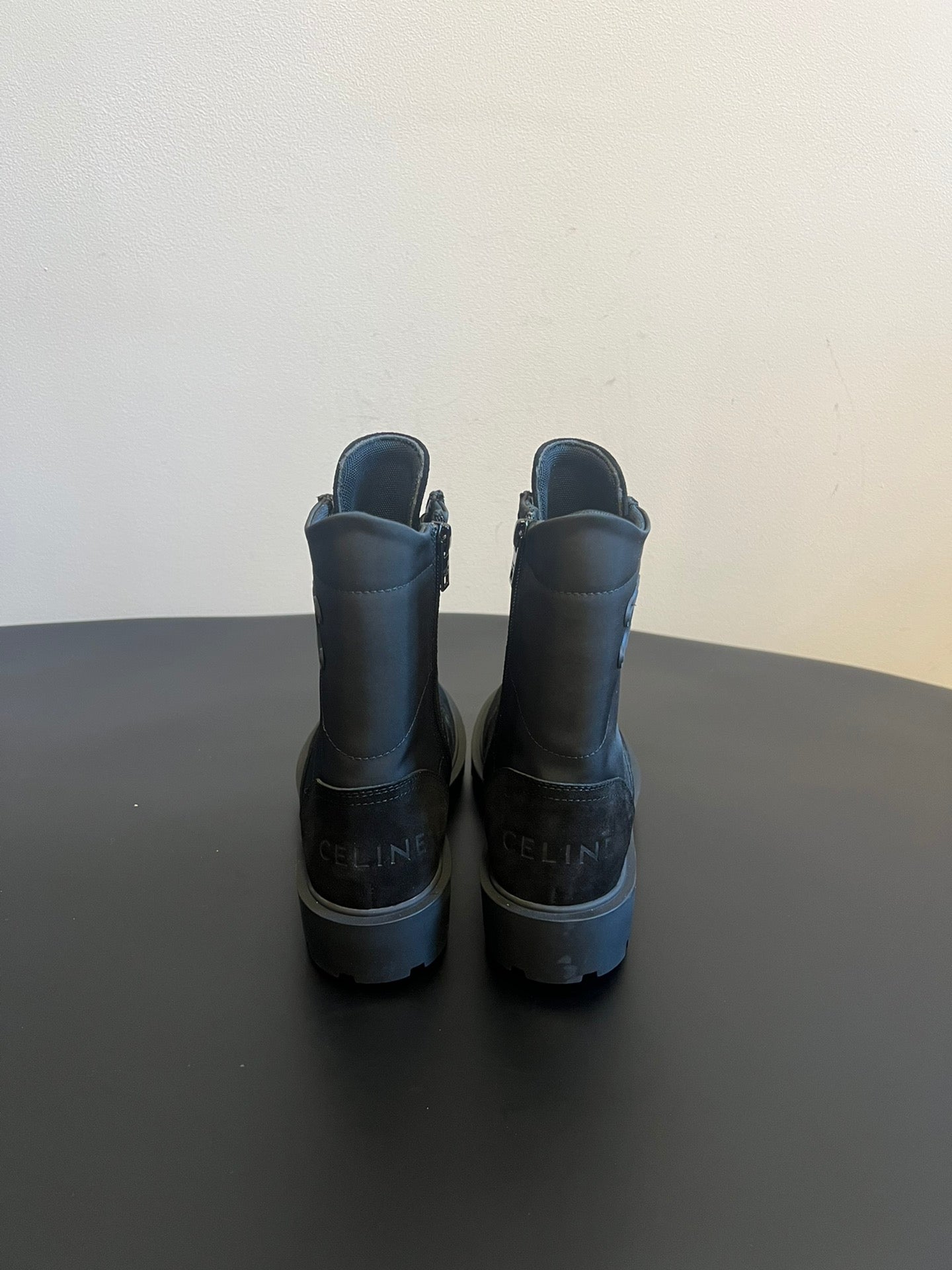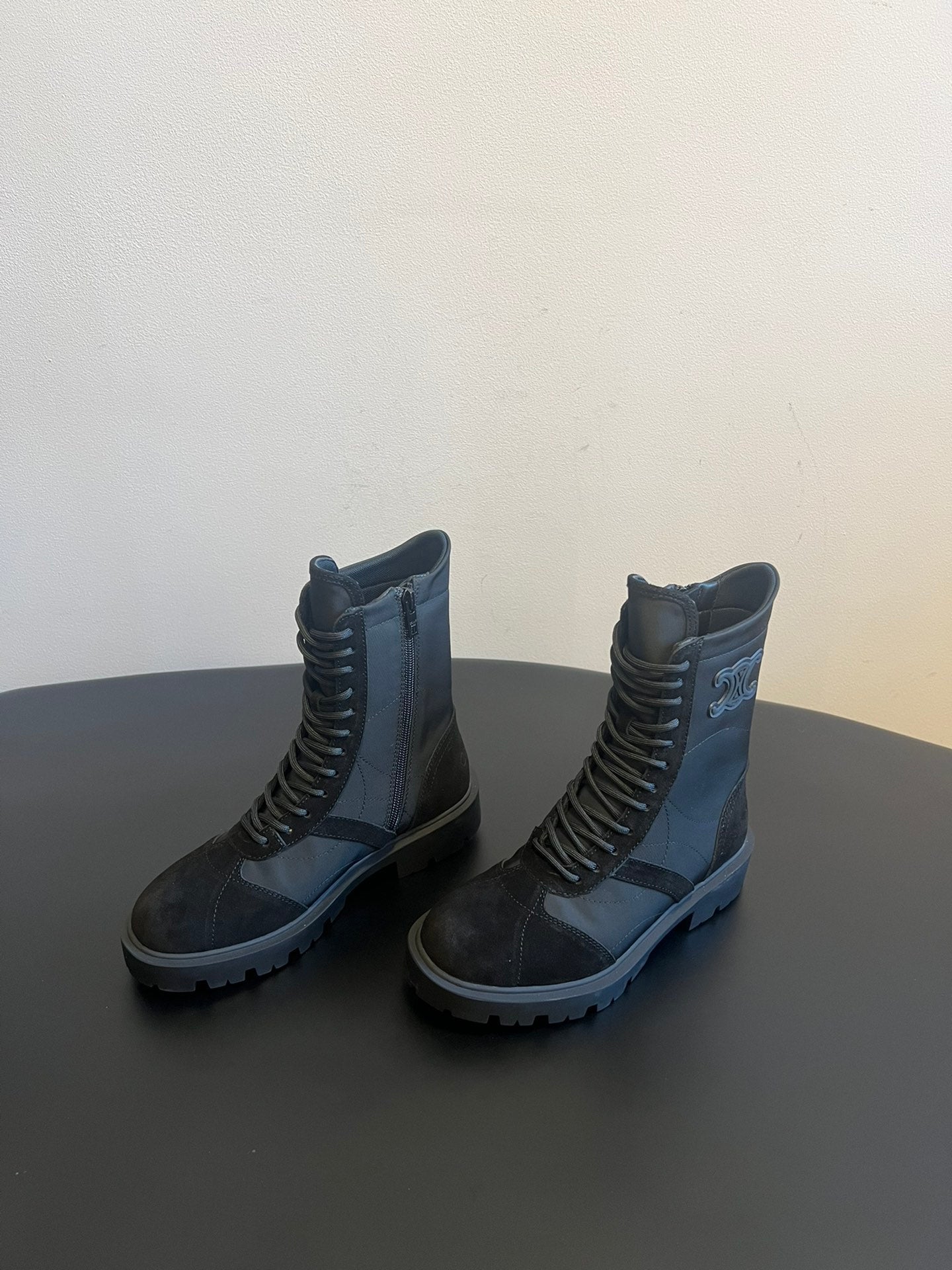 CELINE 26S LACE-UP ANKLE BOOTS IN BLACK SUEDE AND FABRIC
