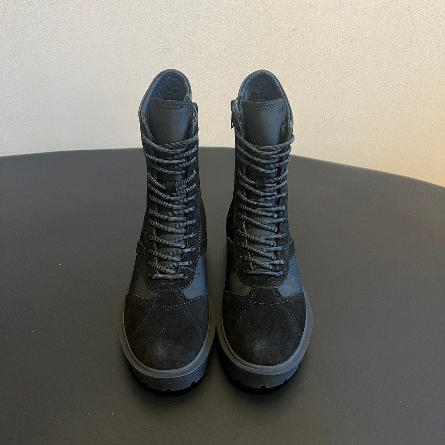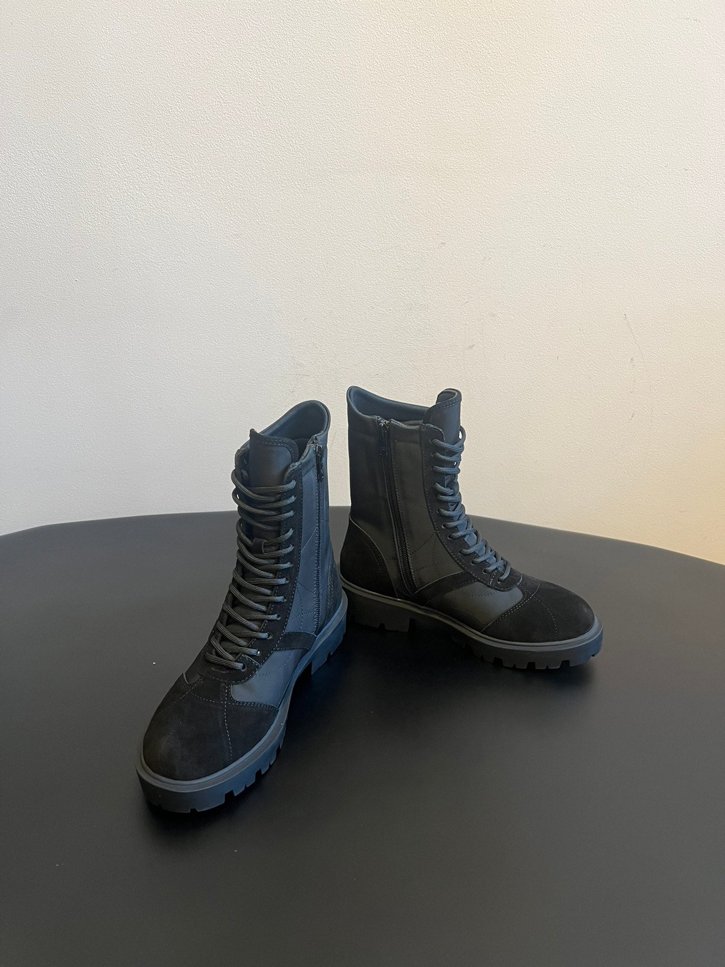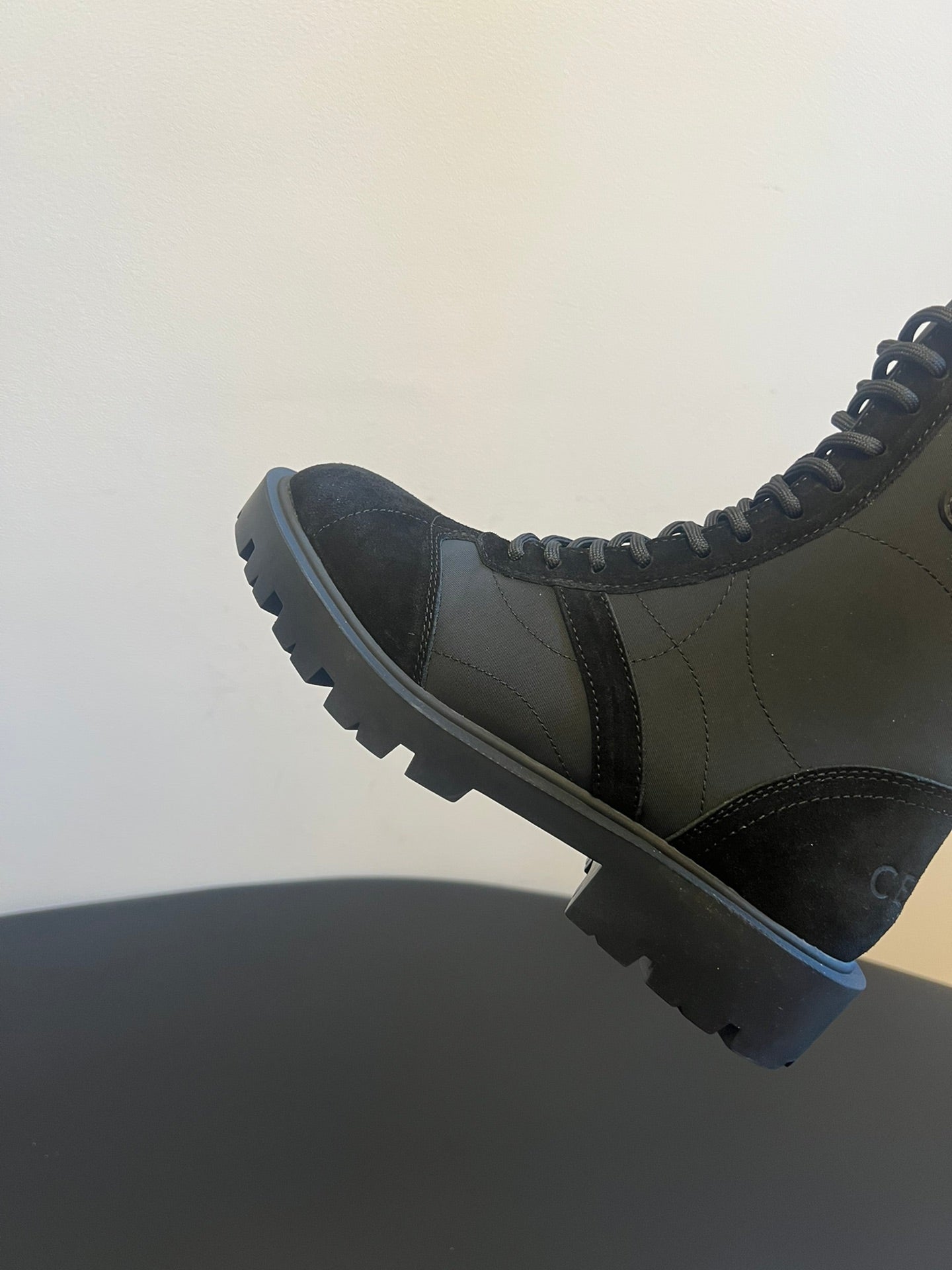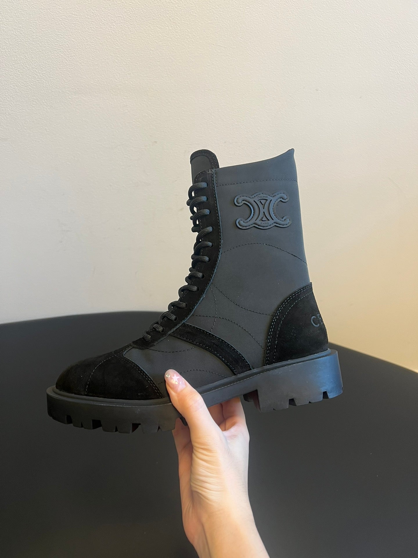 CELINE 26S LACE-UP ANKLE BOOTS IN BLACK SUEDE AND FABRIC