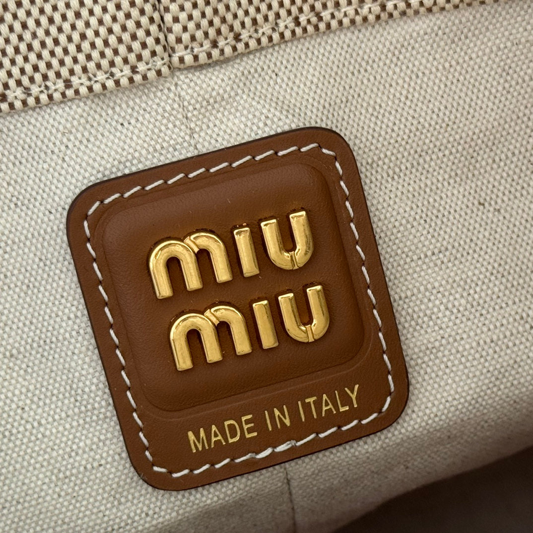 BUCKET BAG 22 BEIGE AND BRANDY IN CANVAS