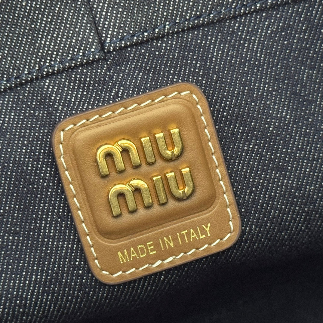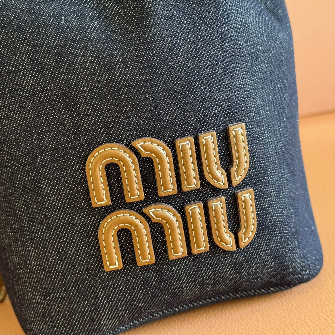 BUCKET BAG 22 DENIM BLUE AND BRANDY IN CANVAS