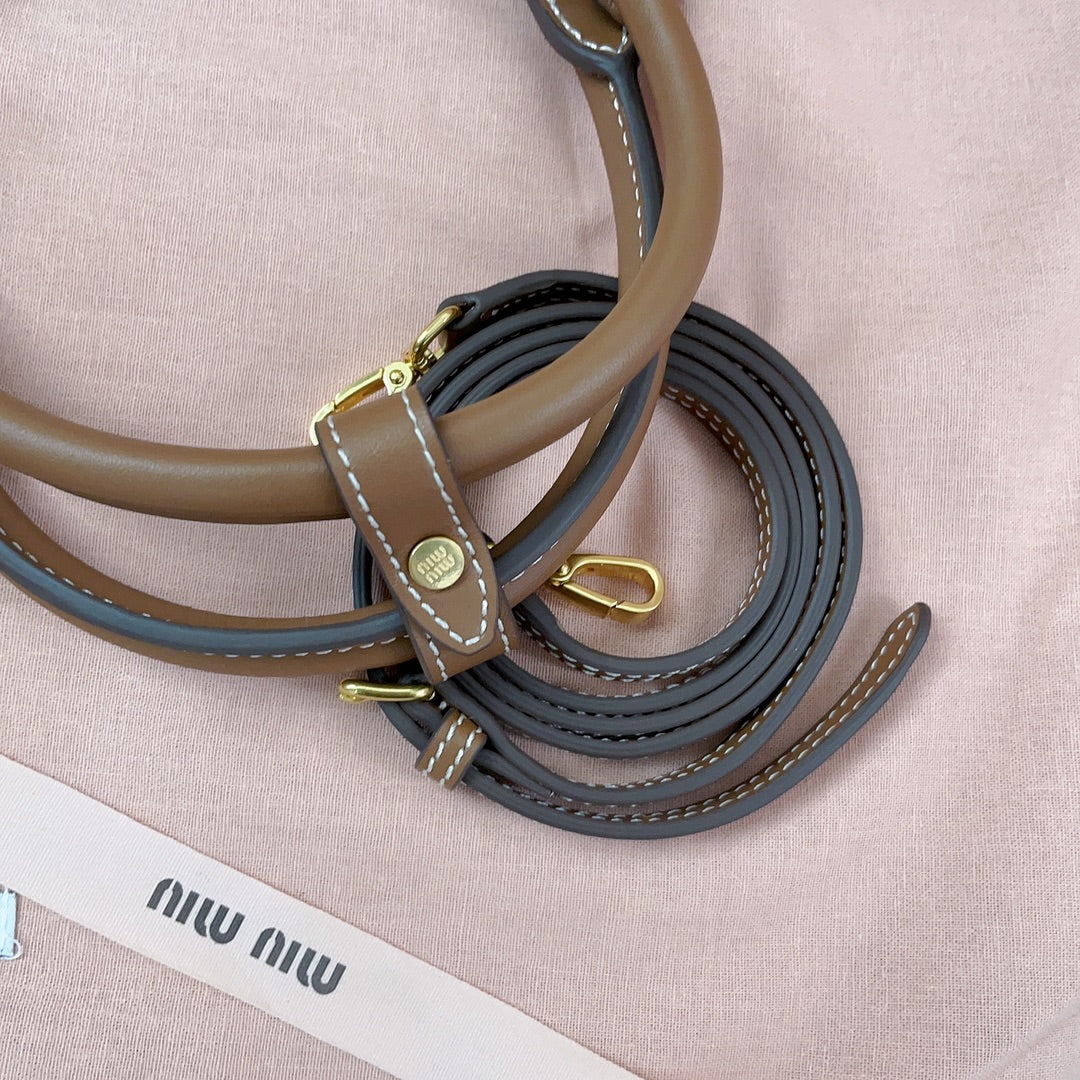 SMALL TOTE BAG 22 IN WHITE CANVAS AND BROWN CALFSKIN TRIM